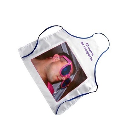 Delantal de poliéster, imprimible con la fotografía y el texto personalizados que desees. Impresión en la misma tela, de gran calidad y duración. Lavable incluso a 60 grados centígrados
